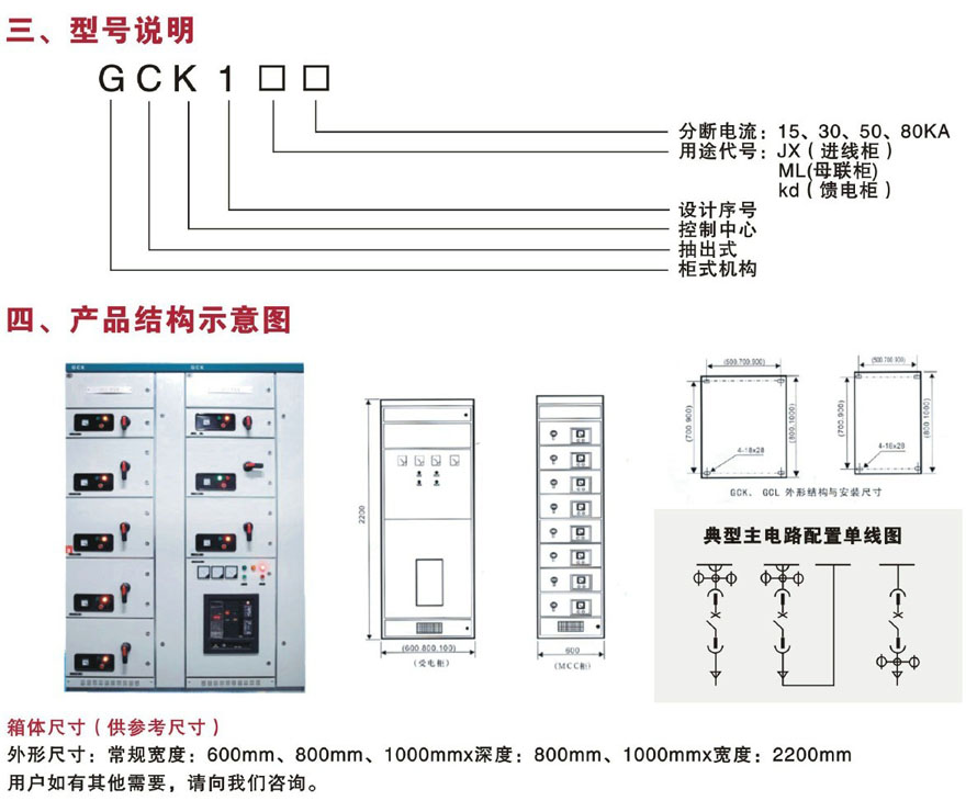 >GCK開關柜符合IEC60439-1《低壓成套開關設備和控制設備》、G B7251.1-2005《低壓成套開關設備和控制設備》、GB/T 14048.1-2006《低壓開關設備和控制設備總則》等標準。且具有分斷能力高、動熱穩(wěn)定性好,結(jié)構先進合理,電氣