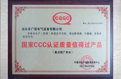 國家CCC認(rèn)證質(zhì)量信得過產(chǎn)品證書