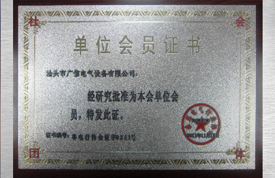 廣東省電氣行業(yè)協(xié)會會員單位證書