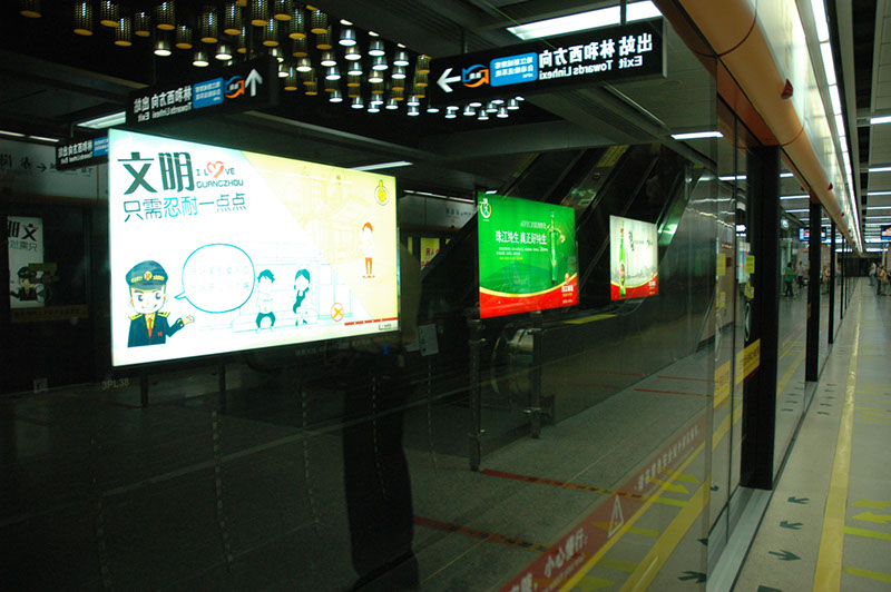 2010年我和我的戰略合作伙伴《廣州南方電力集團電器有限公司》,共同攜手研發設計,生產完成了廣州地鐵重點標志性工程的地鐵站內軌行區和站廳的廣告燈箱,具體項目有:廣州地鐵三號線北延段,珠江新城旅客自動輸送段,廣佛線。其產品的運行性能可靠性,安全性,美觀性得到了用戶的一致好評.